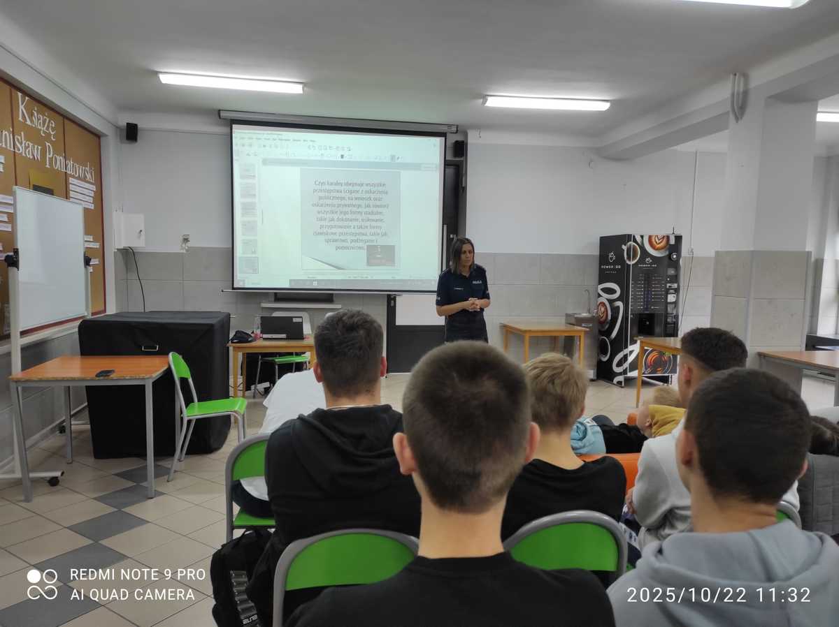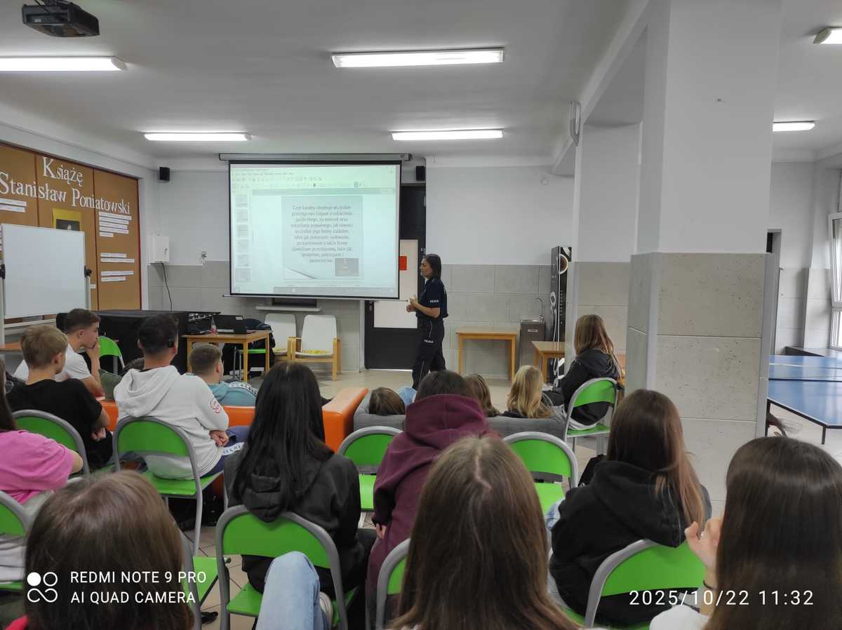Praca profilaktyczna to jeden z ustawowych obowiązków Policji. Nowodworska funkcjonariuszka, realizując swoje codzienne obowiązki, przeprowadza m.in. liczne spotkania w szkołach. Mają one na celu rozpowszechnianie, utrwalanie i zdobywanie wiedzy na temat szeroko rozumianego bezpieczeństwa. W piątek profilaktyk zrealizowała prelekcję dla młodzieży z Zespołu Szkół nr 2 przy ul. Długiej w Nowym Dworze Mazowieckim, dotyczącą odpowiedzialności prawnej nieletnich, hejtu i mowy nienawiści.