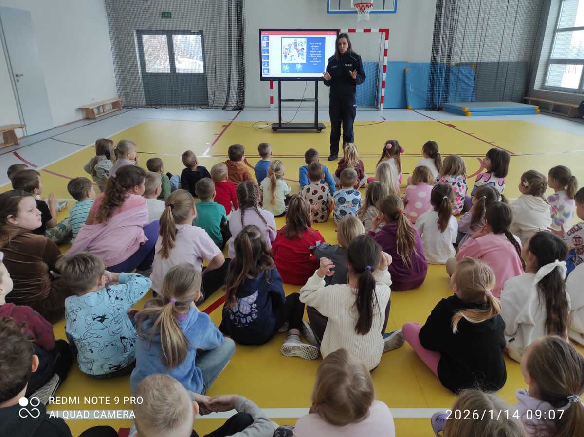 Ważnym elementem spotkania było edukowanie najmłodszych na temat zagrożeń jakie mogą pojawić się podczas zimowych zabaw i aktywności sportowych. Policjantka przestrzegała młodzież przed wchodzeniem na kruchy lód, zjeżdżaniem na sankach w pobliżu dróg, rzucaniem śnieżkami w okolice twarzy czy nawiązywaniem kontaktów z osobami nieznajomymi.